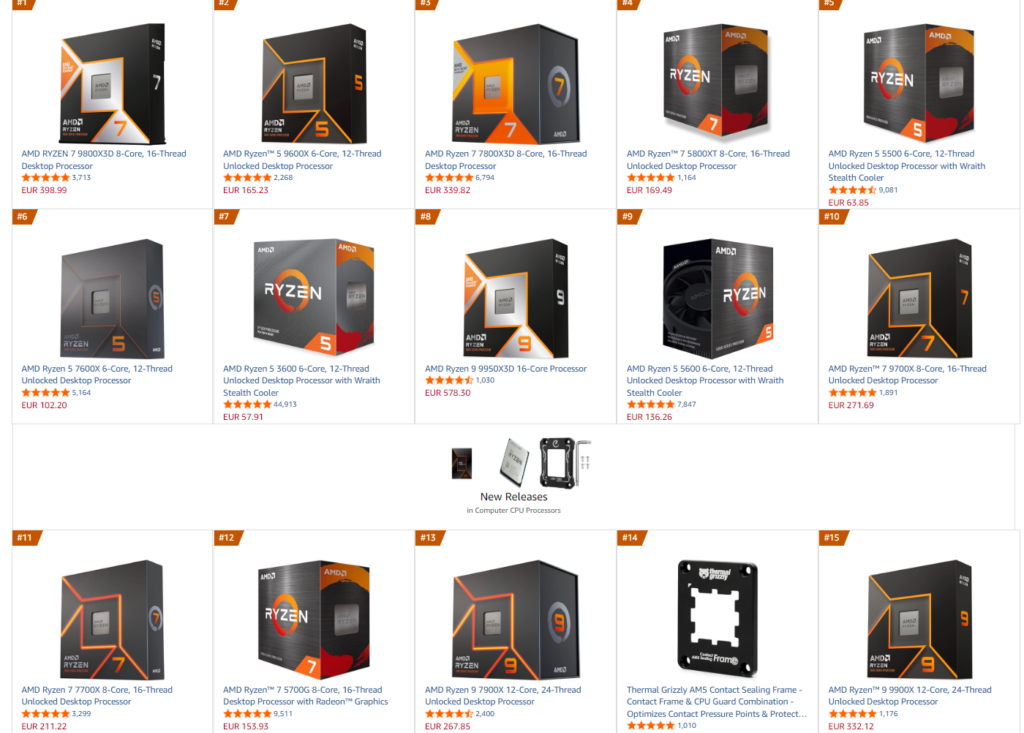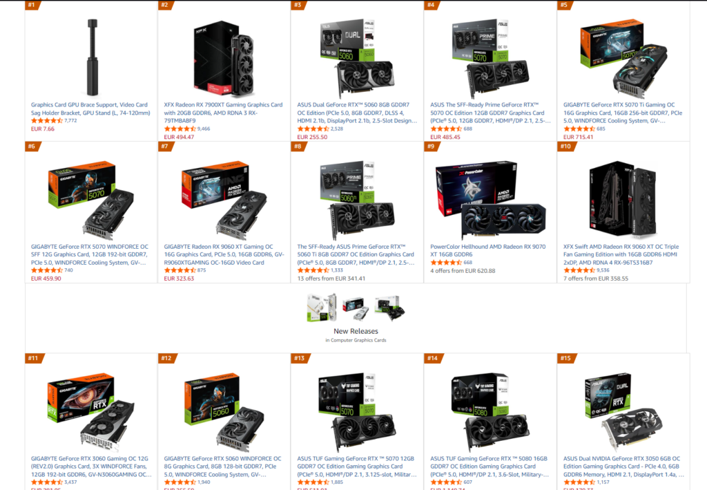 Top 15 Graphics Cards by Sales on Amazon in the European Region